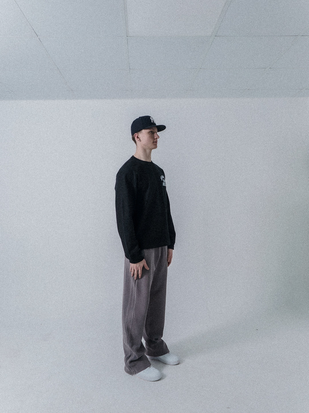 T shirt is constructed from a heavyweight brushed french terry (300GSM) features a Relaxed boxy fit with a slight crop, tight ribbed collar.