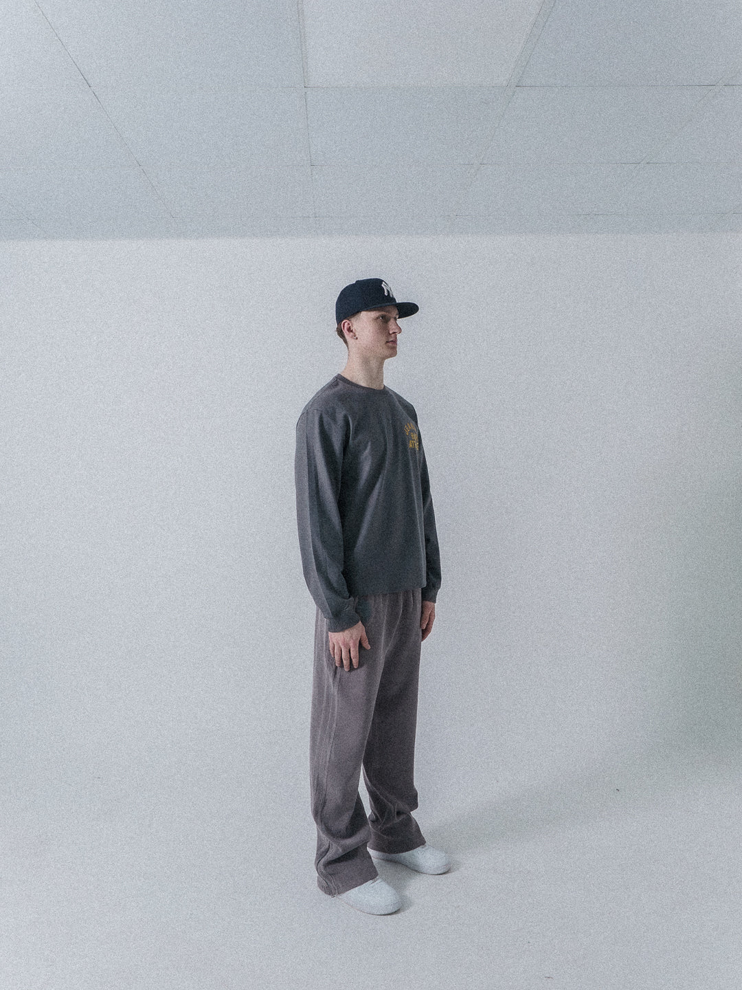 T shirt is constructed from a heavyweight brushed french terry (300GSM) features a Relaxed boxy fit with a slight crop, tight ribbed collar.