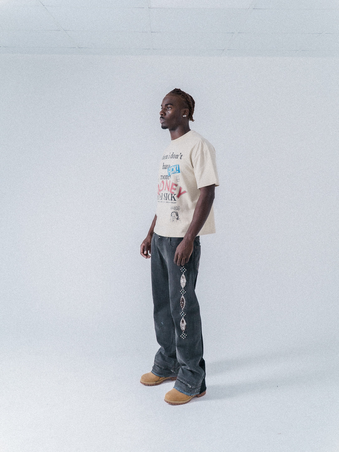 T shirt is constructed from a midnight brushed french Terry (250GSM) features a Relaxed fit with a slight crop, tight ribbed collar.